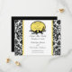 Meddela din kommande bröllop med våra Spara Datum Annonskort med ett vackert svart & vitt damaskmönster med gul trim och en oval ram med 2 fåglar och grenar. Lägg bara till din bröllopsinformation och du är redo! Matchande frimärken och kuvertförseglingar finns tillgängliga i vår butik