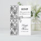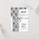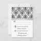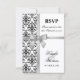 © Socialite Designs. Elegant bröllopsinbjudan RSVP-kort med damask och ett tryckt korsband och rosett. Vänligen kontakta Socialite Designs om du vill ha en annan färgkombination, hjälp med anpassning eller andra bröllopsprodukter som skapats med denna design. OBS: BAND är en bild och är tryckt på inbjudan.