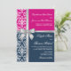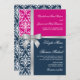 Damask Faux Silver Ribbon Navy Fuchsia Bröllop Inbjudningar