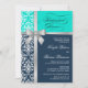 © 2013 Socialite Design. Vår elegant vita dammrepetitionsmiddagsinbjudan har ett faux-silver-band och buskdesign. Bakgrunden är färg av akvarium/turkos och marinblått. Alla inslag och all text i designen är anpassade. Om du behöver ytterligare matchande bröllop-produkter, t.ex. spara-the-date eller tack för fotokort, tveka inte att kontakta Socialite Design. OBSERVERA ATT RIBBON ÄR EN BILD SOM SKRIVS UT PÅ INBJUDANDET.