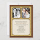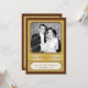 Fira det speciella paret med denna inbjudan till guldbröllopsfest. Deras foto är placerat mot en gul damastmönstrad bakgrund med en mörk burgunderfärgad ram. (Se till att ersätta med ett stort, högupplöst foto för denna främre bilden). Deras namn och bröllopsdatum (eller annan text) är markerade i plaketten undertill. Visa dem sedan som de var då och är nu på baksidan med all information om evenemanget nedan. Matchande produkter finns tillgängliga.