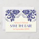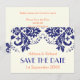 Damask marinblå, korallbröllop Save the Date Inbjudningar
