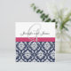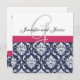 Damask Monogram Blue Rosa White Wedding bjudande Inbjudningar