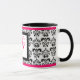 DAMASK MONOGRAM,Rosa Fuchsia Black White Blommigt Mugg