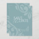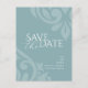 Damask Pewter Blue Photo Bröllop spara datum Meddelande Vykort