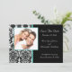 Lägg märke till ditt framtida bröllop med våra Spara datum meddelande-kort med ett vackert svart och vitt dammmönster med ett turkosblått trimmat foto ram. Lägg bara till din bröllop-information och ditt foto och du är redo att gå! Matchningsförseglingar för frimärke och kuvert som finns i vår butik