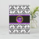 DAMASK PURPUR AMETYST MONOGRAM,svart och vit Inbjudningar