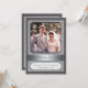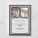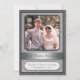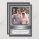Fira det speciella paret med denna silverbröllopsinbjudan. Deras foto är placerat mot en silverfärgad damaskmönstrad bakgrund med en mörkgrå ram. (Se till att ersätta med en stor, högupplöst bild för denna framsidesbild). Deras namn och bröllopsdatum (eller annan text) är markerade i plaketten undertill. Visa dem sedan som de var då och som de är nu på baksidan med all information om evenemanget nedan. Matchande presenter och porto finns tillgängliga.