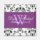 Svart + Vit Monogram Damask Bröllop, Magneter, Spara datum magnet. Bakgrundsfärg kan läggas till. Underbar nyans av lila, nästan plommon / lavendel, som accent. Copyright © 2009 PixDezines.com och PixDezines på zazzle.com