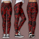 Svarta och röda vinfärgade leggings, med ett invecklat, högkontrast-svängande damaskmönster.