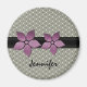 Skakblommor och trendig Damask Flowers Stripe Gräns Magnet med en elegant dammbakgrund och en chic stripe-band med dammkblommor. Den här moderna magneten ger en snyggt gåva till en vän, släkting eller till och med dig själv! Anpassa den här designen med ditt namn eller annan text till ge.