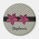 Skakblommor och trendig Damask Flowers Stripe Gräns Magnet med en elegant dammbakgrund och en chic stripe-band med dammkblommor. Den här moderna magneten ger en snyggt gåva till en vän, släkting eller till och med dig själv! Anpassa den här designen med ditt namn eller annan text till ge.