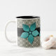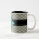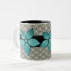 Skakblommor och trendig Damask Flowers stripe Gräns Mugg med en bakgrund av en elegant damm och ett band med chic strimlad med dammkblommor. I snyggt är mugg ett underbart val för att få tag på morgonkaffe eller någon annan favoritdryck! Anpassa den här designen med ditt namn eller annan text till ge.