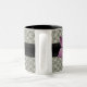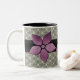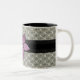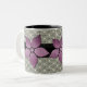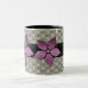 Skakblommor och trendig Damask Flowers stripe Gräns Mugg med en bakgrund av en elegant damm och ett band med chic strimlad med dammkblommor. I snyggt är mugg ett underbart val för att få tag på morgonkaffe eller någon annan favoritdryck! Anpassa den här designen med ditt namn eller annan text till ge.