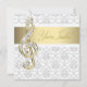 Elegant grå damaskus guld musik recital inbjudningar med en diamant & guld treble clef design. Vacker damaskus treble clef inbjudan är perfekt för recital inbjudningar, konsert inbjudan, piano recital, symfoni inbjudan eller någon annan musikframträdande. Denna eleganta treble clef inbjudan kan enkelt anpassas för din händelse genom att lägga till dina händelse detaljer, typsnitt, teckenstorlek & färg och formulering.