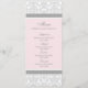 Menyn för bröllopmiddagen i ljusa rodna rosor för elegant, grå färg och det blom- damastast mönster för vitklassiker, anpassade med ditt specificerar och tillgängligt, i att matcha bröllopprodukter.