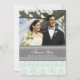 Tackar det beställnings- fotoet för bröllop dig för gåvakorten i ljus pastellfärgad mintgrönt för elegant, grå färg och mönster för vintage för vitklassiker blom- damastast. Fullständigt anpassade, dubbelsidigt som, är tillgängliga i många matcha produkter för alla dina bröllop- eller partybehov. Kontakta oss för att be en färgändring eller anpassad design.