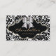 Visitkorten för brunnsorten för salongen för Makeupkonstnären med nätt blom- damastast bakgrund och guld klipper och pryder med ädelsten diamanten för silverpilbågehjärta.