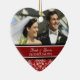Anpassadet för prydnad för vinterbröllopfoto med ditt egna bröllopfoto och bröllop daterar i elegantt rött, svartvitt med det blom- damastast mönster för klassikern. En stilfull julgåva för familj och vänner eller att dekorera ditt julgran eller hem för helgdagar. Perfekten långt som minns din vinterbröllopsdag.