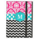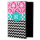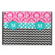 Visa av din stil i en roligt och personligt långt med denna rosa, blått och svärta damast, pricker och sparremonogramfodral.