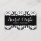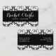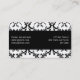 Elegant damastast design för visitkort för mönsterhändelsePlanner vid Elke Clarke ©. Mer färgar och stilar som är tillgänglig på www.zazzle.com/damaskgallery. En härlig mångsidig design av svartvit damast med en svart fodrar bakgrund. Din namn och ockupation är på bekläda av kortet i en trendig skrivar stilsorten, och din information om affären är på baksidaen. Anpassade med din informations- och bakgrundsfärg.