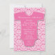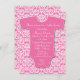 Roligt ljus rosa baby showerinbjudan med en gullig och damastast tryckbakgrund. Invitera dina gäster till din baby shower eller annan händelse med stil!