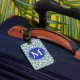 Damastast blått- & gröntpersonlig för elegant bagagebricka