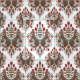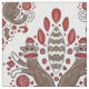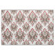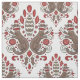 bomullstyg som skrivs ut med ett upprepande damastast mönster i ett sock monkeytema som är rött, lagar mat med grädde, bryner och svärtar. Passande för raddor tillverkar, kanske gulliga gardiner eller kudder i ett barns rum eller playroom.