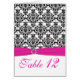 Damastast bordsnummerkort för rosor, för vit och hälsningskort