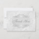 Personligt bröllptackkort. Elegantt och glamoröst silver och damastast bröllop för vit tackar dig lägenhetkort som skrivs ut på inbjudanpapper. Härlig, trendig, chic modern contemporarydubbla sid inbjudan med ett flott stilfullt utsmyckat rullaarbetsnamn pläterar på en nätt damastast mönsterbakgrund. Alla av text är fullständigt personalizable/personalisable att möta dina behov, och du kan ändra stilsortsstilen, att färga och format av stilsorten om dig lust. Jag har att matcha bröllopinbjudningar och andra produkter i mitt lager. Original artwork©delightful-doodles.com. Om du behöver någon hjälp som skräddarsy din produkt, behar kontaktar mig till och med mitt lager och, jag ska är lycklig att hjälpa. BEHAGA NOTERAR: Alla inbjudan på Zazzle har lägenheten utskrivaven bilder.