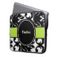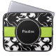 Damastast laptop sleeve med monogramutrymme som tillfogar ett namn eller initialer och svartvit bakgrund som skyddar din bärbar dator, netbook eller tablet i stil. passformar 15 flytta sig mycket långsamt mobila apparater.