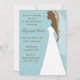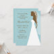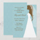 Härlig brunt- och vitbrudsilhouette på en damastast mönsterbakgrund för blått. Den perfekta inbjudan för din möhippa, bacheloretteparty, Etc.