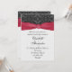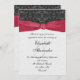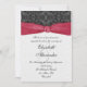 Denna inbjudan har en damastpanel inslagen i ett rött band. Den nedre delen av inbjudan har en damastpanel i en ljus kontrasterande färg. Om så önskas kan denna panel raderas i anpassningsfönstret för att lämna denna del vit. Lämplig för många tillfällen som t.ex. ett bröllop som bilden visar eller anpassa texten för att passa en förlovning, födelsedag, årsdag, brudparty eller något annat speciellt elegant, sofistikerat tillfälle.