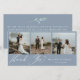 Elegant dammblått, flerbilder bröllop tackkort. Kortet har enfärgade dammblå bakgrunder, vit kalligrafi skrift "Tack", dammblå akvarell pampasgräs accent på baksidan och 3 bilder utrymmen på framsidan.