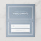 Enkla, minimalistiska och chic vykort för bröllopsgäster har en modern design med en dubbel ram i krämigt vitt på en trendig DAMSINNESBLÅ bakgrund. Den moderna enkla designen ger tidlös sofistikation. Designad för att ge en layout för att anpassa dina gästuppgifter med stil. Baksidan av kortet har en matchande design med personlig text med namnet på bruden och brudgummen i vit script och kalligrafi. Kortet är vackert kompletterat med enfärgat matchande blått på insidan för en perfekt färgkomplettering. (Finns också vacker kompletterad och tillgänglig med enfärgat vitt på insidan i en separat annons.)