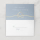 Enkel, minimalistisk, modern, elegant dammig blå bröllopsplatskort med namn och bordnummer guldreppshjärta och falsk guldfolie baksida.
