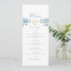 Elegant, modern kalligrafiskrift, elegant dammblå bröllopsmeny med gul repsnöre hjärta, blåklocka vilda blommor, monogram och enkel kalligrafiskrift.