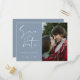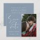 Damblå kalligrafi Spara datum Bröllopsfoto Inbjudan Vykort