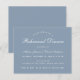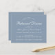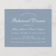 En enkel, minimalistisk inbjudan till övningsmiddag: bara vit text på dammig blå bakgrund. Orden "Övningsmiddag" och namnen skrivs i ett elegant kalligrafiskt skript, resten i versaler.