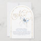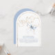 Den här bröllopsfestinladningen ”She's Tying the Knot” fångar romantiken med en lekfull twist. En flödande guldkalligrafirubrik lyser som fin juvelery mot en skarp vit bakgrund och drar omedelbart till sig blicken och sätter en festlig ton. Känsligt placerad ovanför texten känns en handmålad dammig blå akvarellslinga som det sista bandet på en vackert inslagen present – charmig, oväntad och obestridligt chic. Den bågformade klippningen ger inbjudan ett extra lager av distinktion och ger den en skulptural, modern silhuett som känns lika speciell som det ögonblick den tillkännager.
