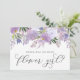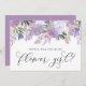 Be familj och vänner att vara en del av din bröllopsdag med detta lila blomsterkort "Vill du vara min blomsterflicka". Det har en akvarell blomsterkrans av dammiga lila rosor, peonior och prästkragar. Personalisera detta blommiga förslag till blomsterflicka genom att lägga till ett namn och ett meddelande.