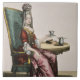 Damen som tar kaffe, mode pläterar, c.1695 kakelplatta