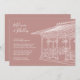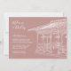 Lätt att anpassa bröllopsmall. Destination bröllop New York City, Central Park Damernas Pavilion lusthus bröllopsceremoni inbjudan. Monokrom med vit silhuett illustration av detta populära bröllopslusthus som ligger nära sjön på övre västra sidan av Central Park i hjärtat av NYC.