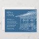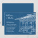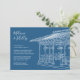 Lätt att anpassa bröllopsmall. Destination bröllop New York City, Central Park Damernas paviljong lusthus bröllopsceremoni inbjudan. Monokrom med vit silhuett illustration av detta populära bröllopslusthus som ligger nära sjön på övre västra sidan av Central Park i hjärtat av NYC.