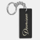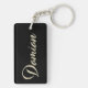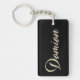 Ein sehr schöner edler personalisierter Schlüsselanhänger im whitegold Lettering Look auf schwarz für Damian.