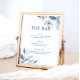 Dammblå akvarellblommig menytafel för bröllopsbare poster