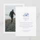 Uttryck din tacksamhet med stil med detta eleganta dammblå blommiga bröllop tackkort. Med ömtåliga akvarellblommor och klassisk typografi på framsidan är det ett tidlöst sätt att tacka dina gäster för att de firade med dig. Baksidan innehåller ett fullstort foto av det lyckliga paret, vilket gör detta kort till en meningsfull och personlig souvenir. Perfekt för bröllop, mottagningar, brudshower och romantiska evenemang.