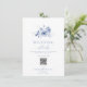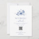 Dela all viktig information om din speciella dag med detta eleganta bröllopsdetaljkort. Med ömtåliga dammblå akvarellblommor och en blandning av klassisk och scripttypsnitt är detta kort både stilrent och funktionellt. Inkluderar utrymme för ceremonitider, lokalinfo, boende och en QR-kod eller webbplats för enkel gästaccess. Ett vackert tillägg till alla bröllopspaket med romantisk blå tema.