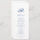 Lägg till en touch av tidlös elegans till ditt bröllopsbord med detta Dammblå Blommiga Meny Kort. Med mjuka akvarellblommor i lugna blå toner och klassisk serif-typografi kompletterar denna meny perfekt romantiska och förfinade bröllopsteman. Perfekt för att visa dina läckra erbjudanden och höja din bordsdekoration med en graciös detalj.