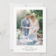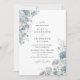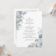 Denna eleganta dammiga blå blomsterbröllopsinbjudan har en raffinerad akvarellbukett och en ren layout med foto på baksidan, designad för par som söker en tidlös modern klassisk bröllopsstil.